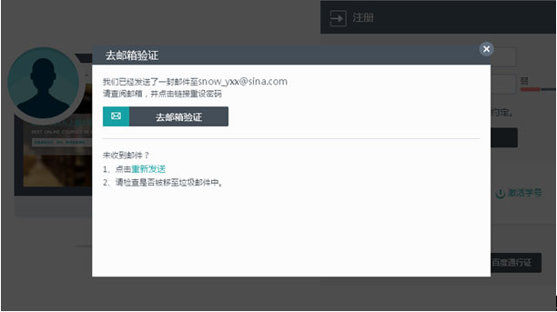 按提示输入,点击注册后系统会发送邮箱验证邮件(如果没有收到邮件可以点击“重新发送”)。