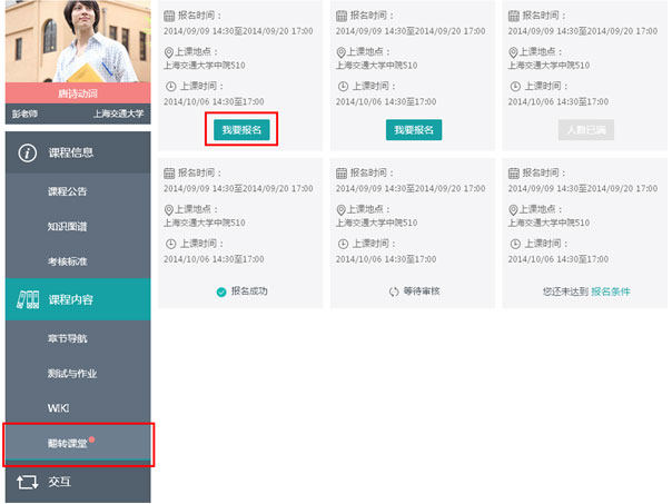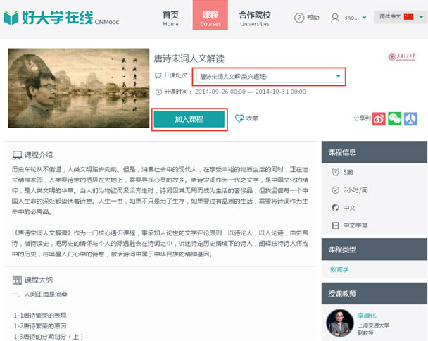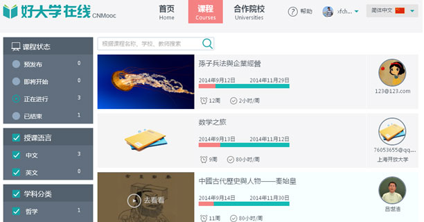 点击页眉上面的“课程”,进入课程列表界面后,可看到所有课程。