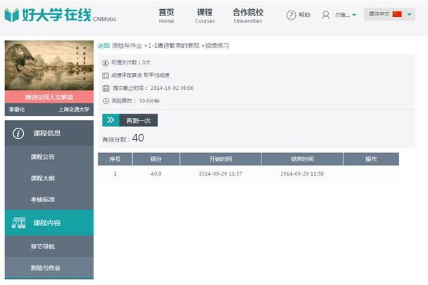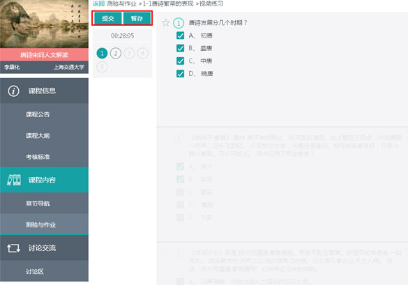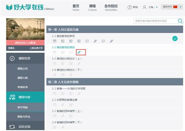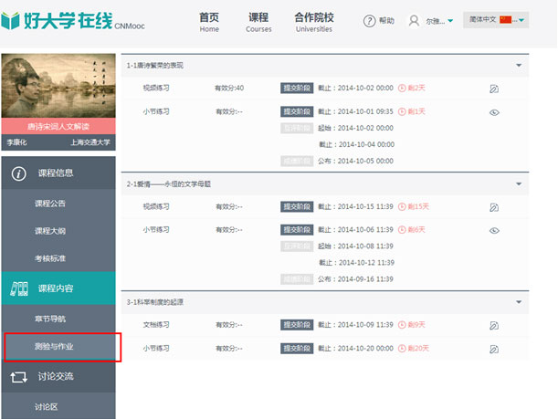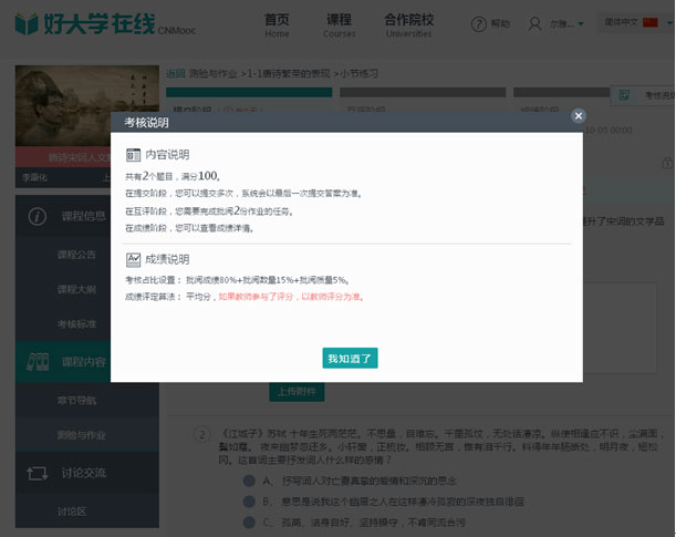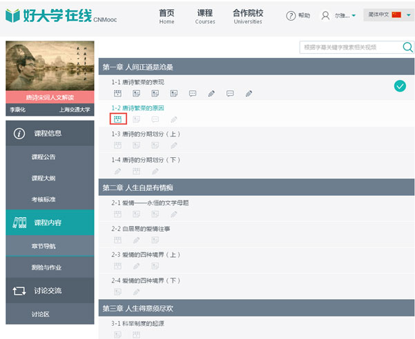 刚刚我们了解了如何点播视频,现在让我们了解一下如何去做课程中测验和作业。