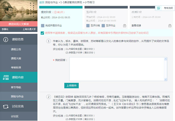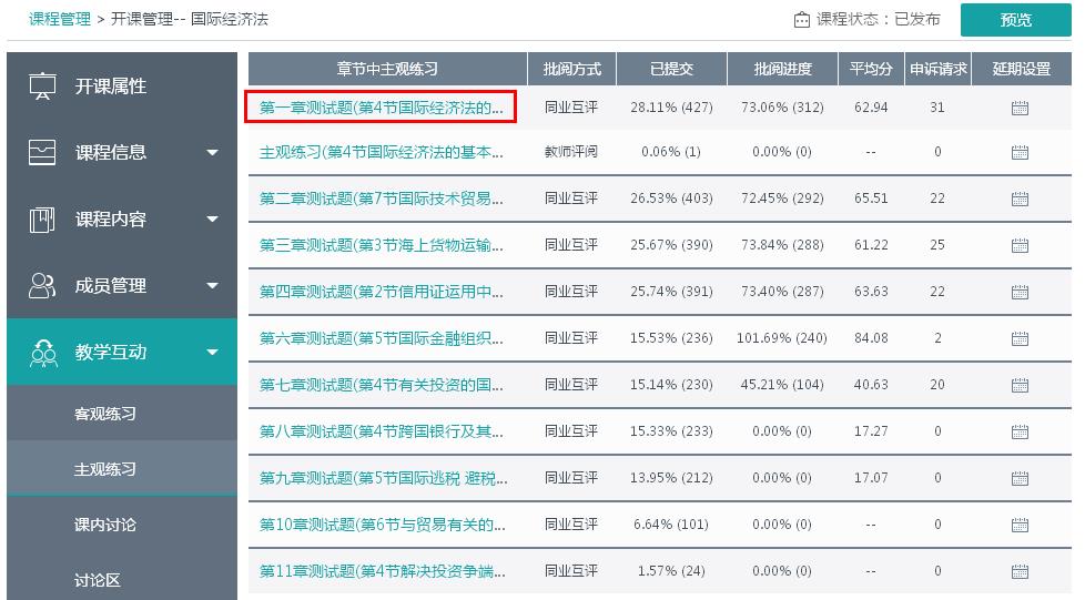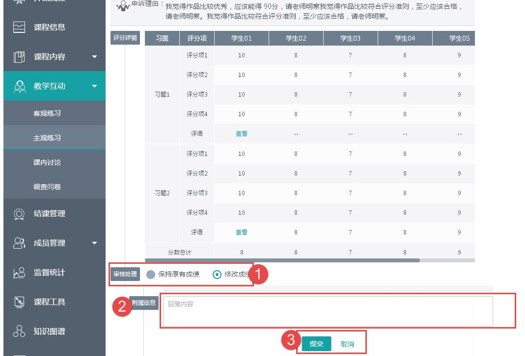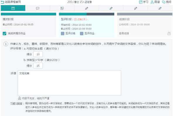 教师批阅的主观练习与同业互评的主观练习大致相同,这里不再做详细描述。
