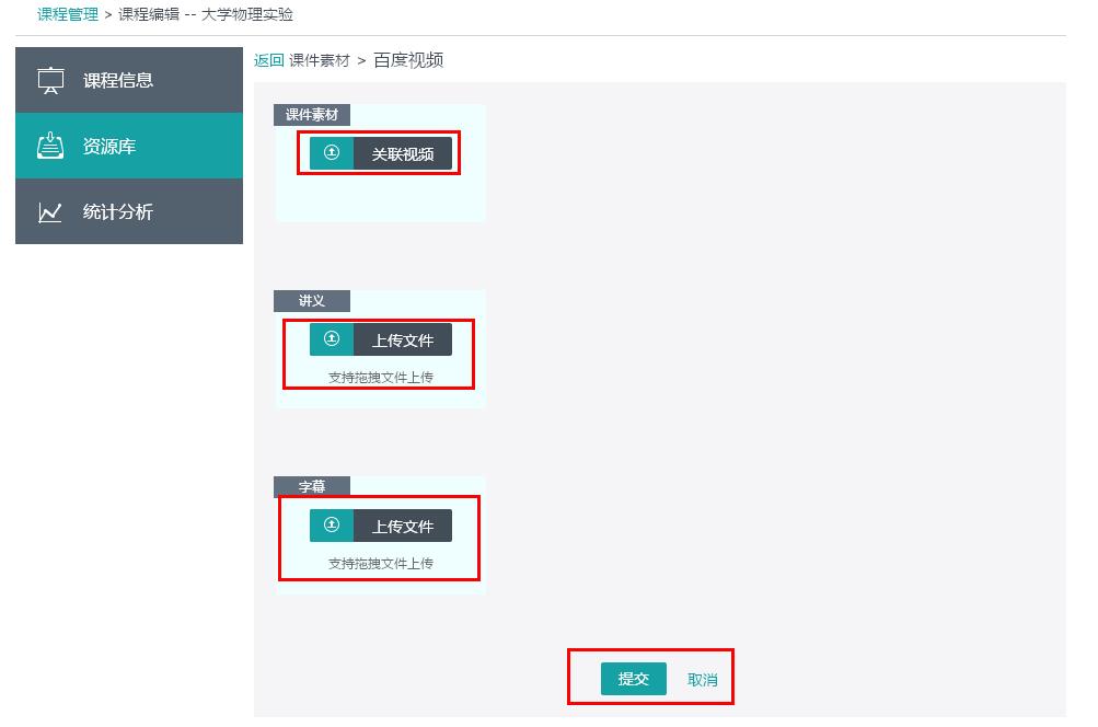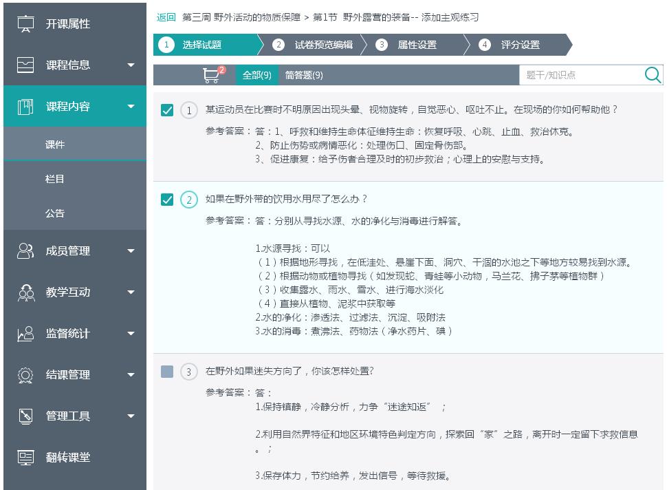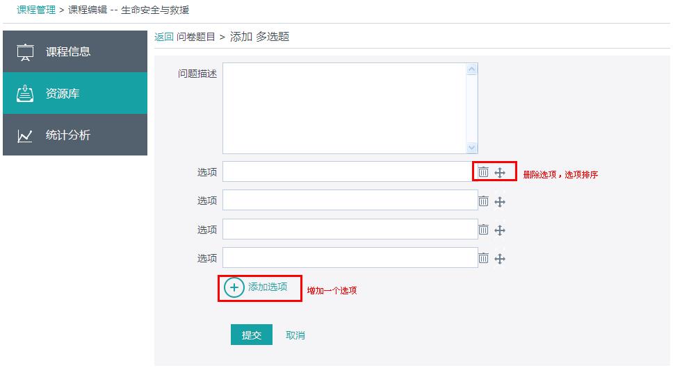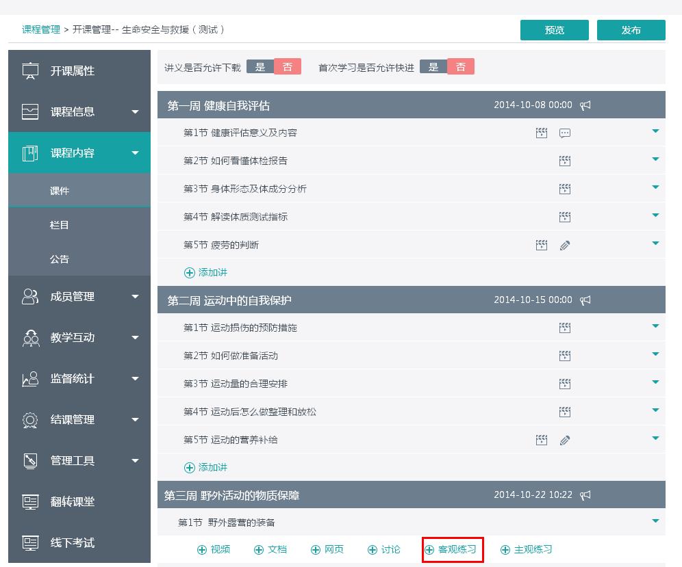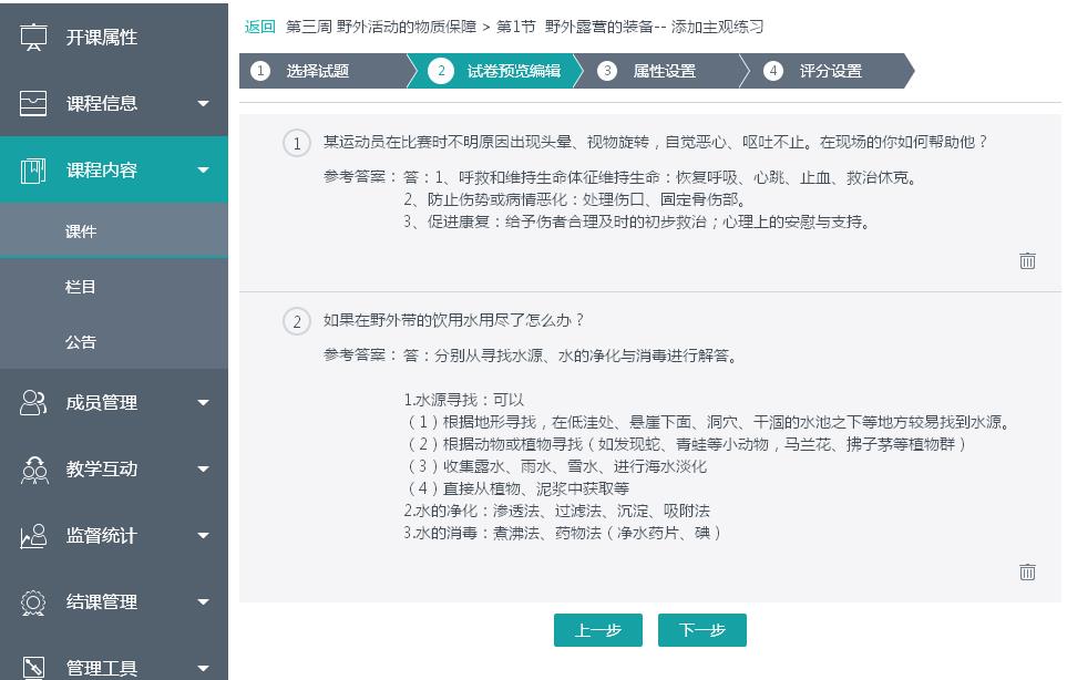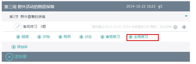 在讲座内容编辑页面中,点击添加主观练习按钮。进入添加客观练习步骤页面: