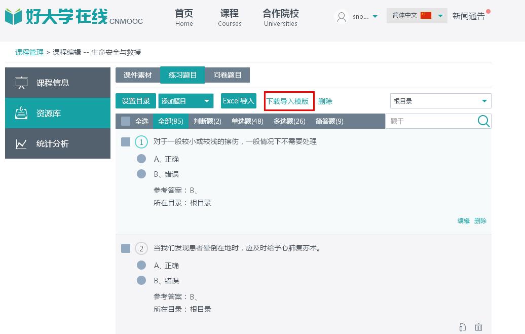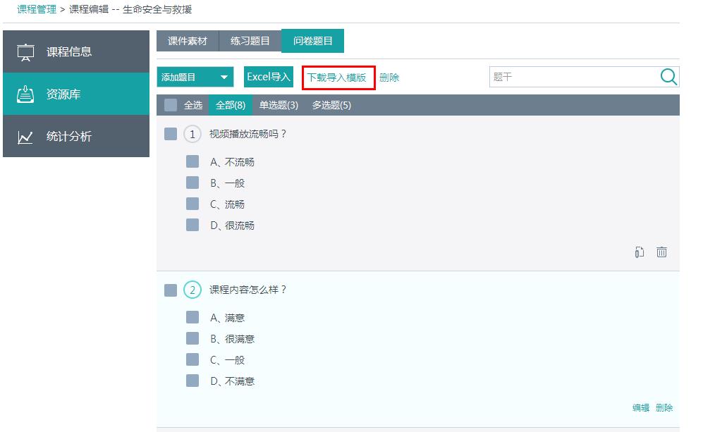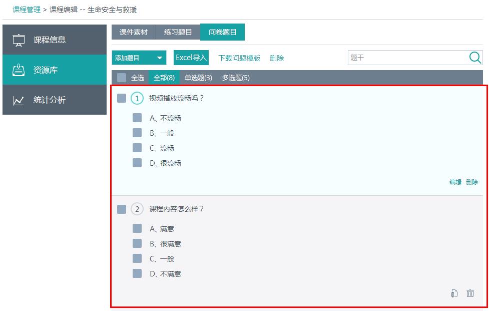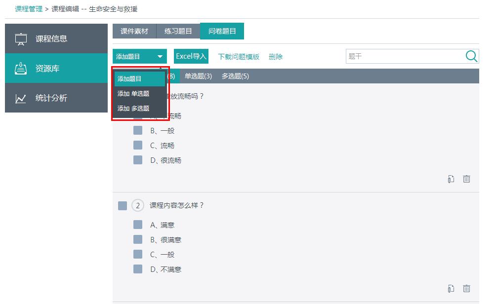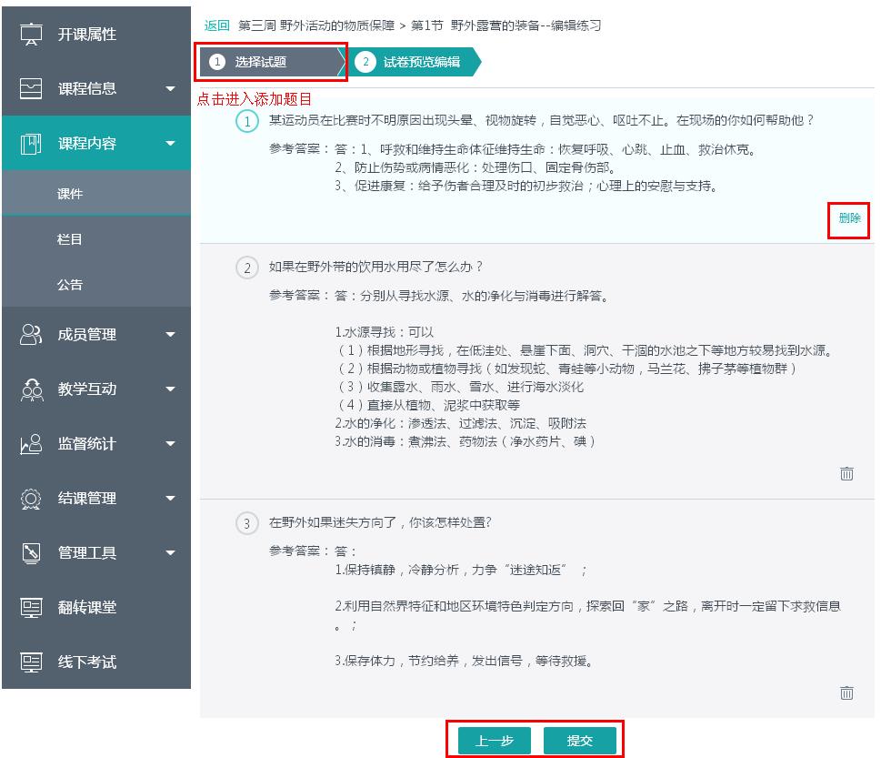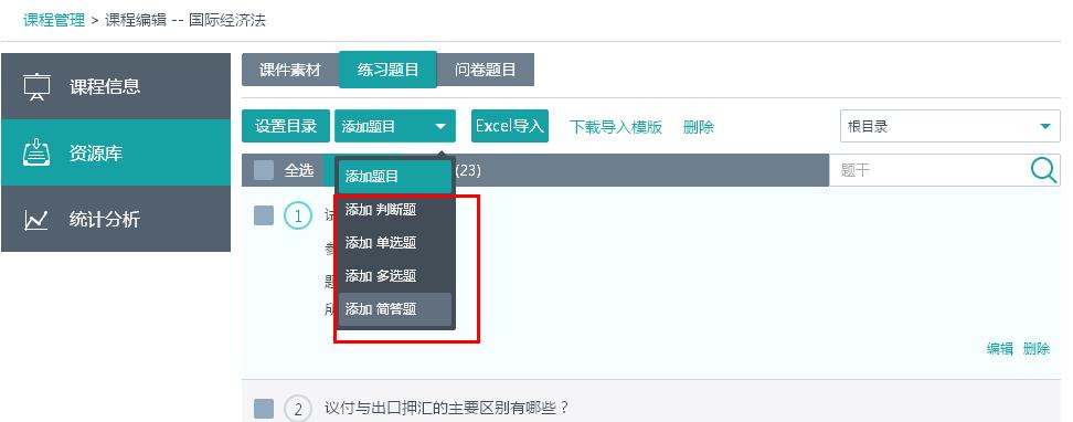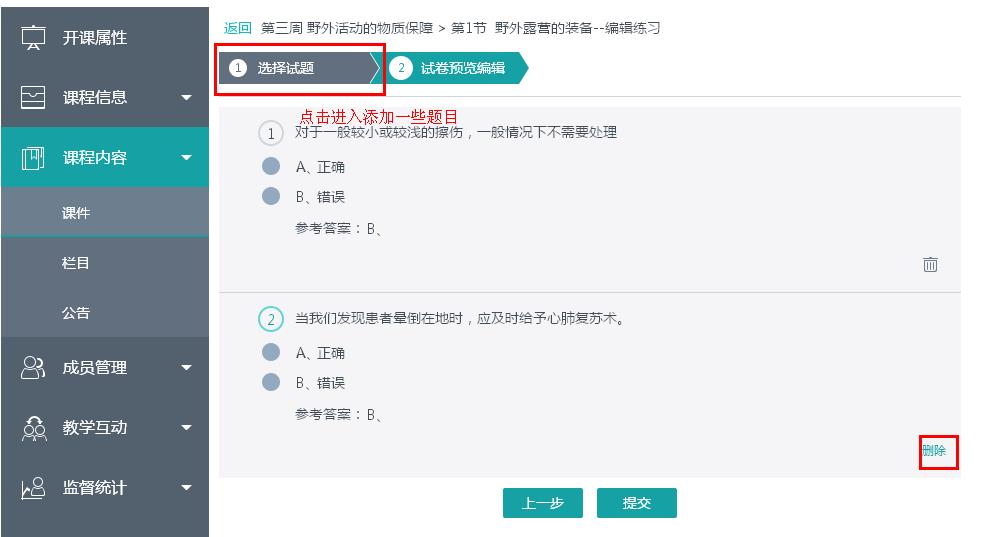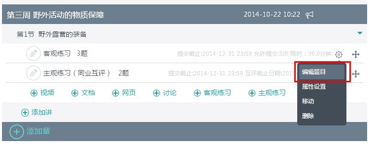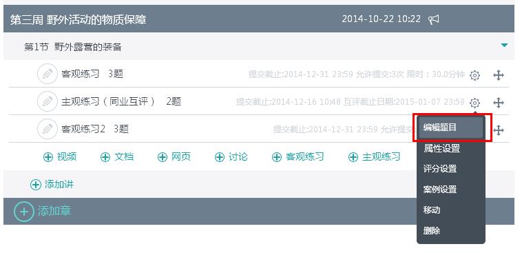 注:可以在没有人提交练习和暂存练习时调整题目,一旦有人提交不支持进行增减题目。