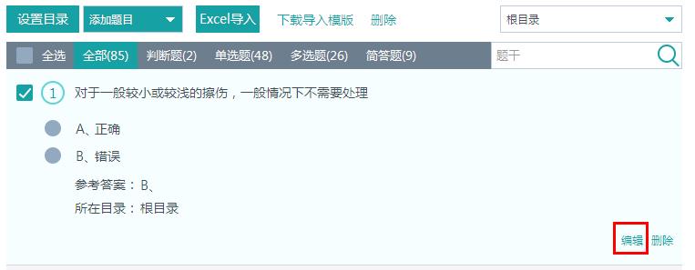 鼠标点击练习中设置图标,在弹出下拉菜单中点击“编辑题目”链接,