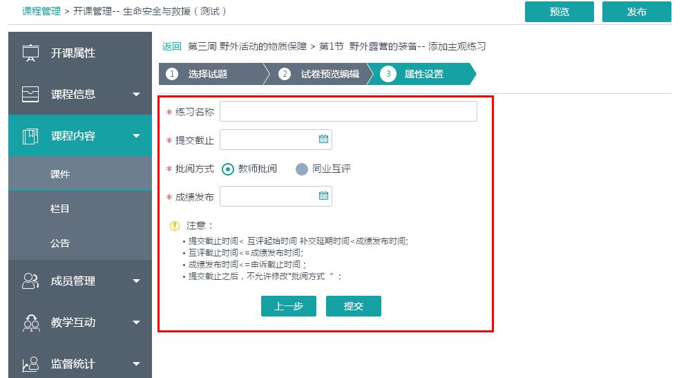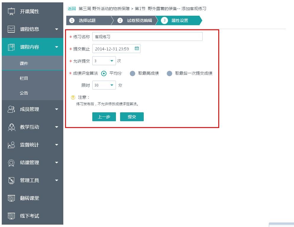 ● 提交截止时间:练习什么时候提交截止,学生不能再进行提交;