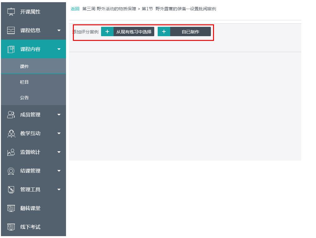 依据案例来源将设置案例方式分为“从现有练习中选择”和“自己制作”。