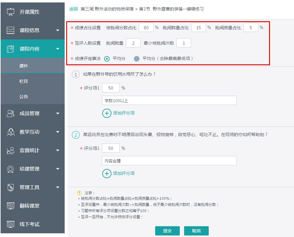 ● 批阅起止时间:学生互评成绩的开始和结束时间;