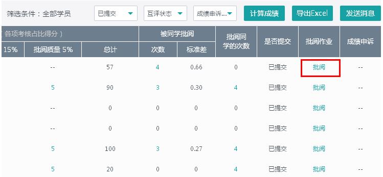 批阅质量:只要批阅一份作业,该项就会得满分。教师会在后续根据实际情况修改该项得分。